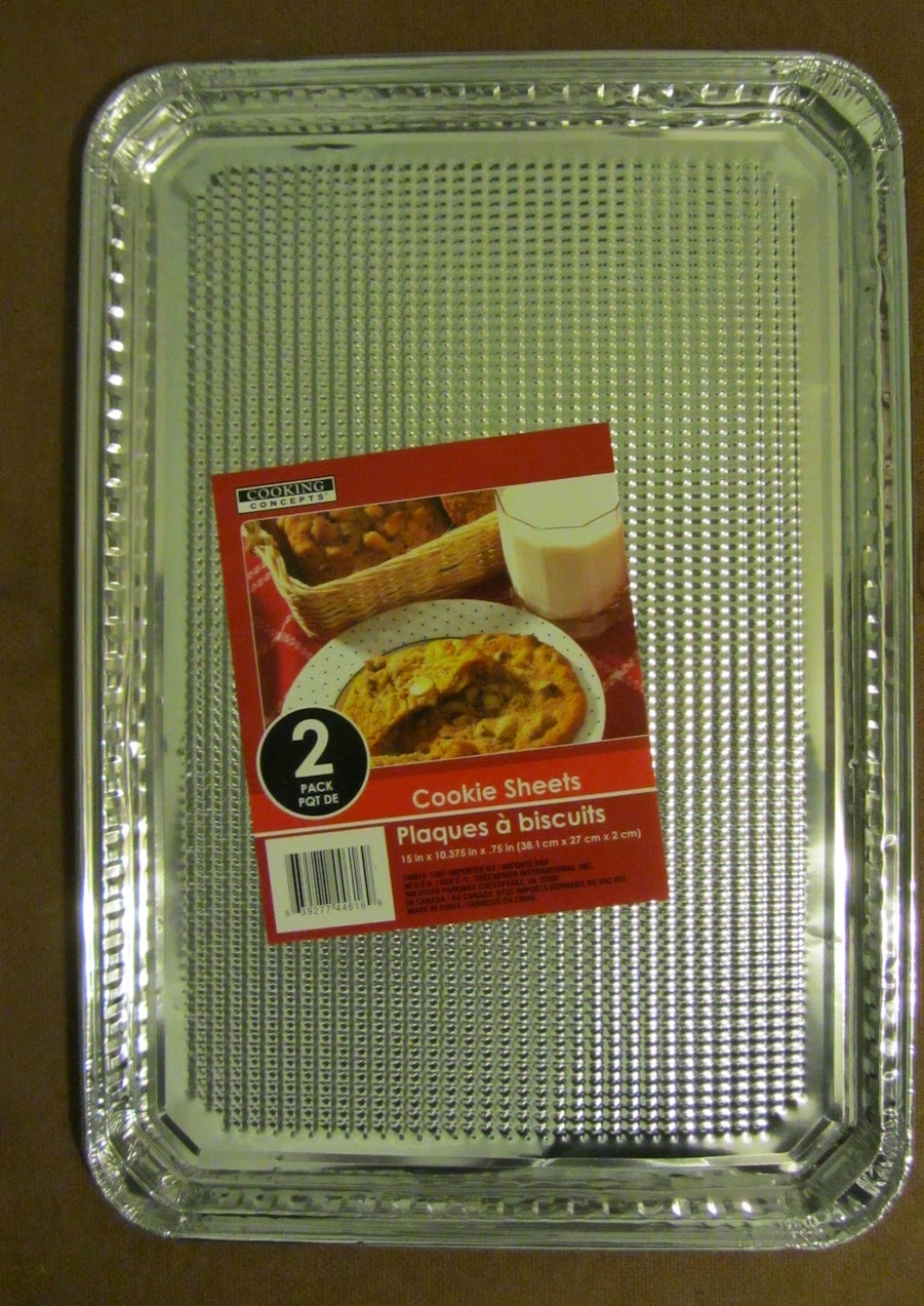 Okay, so I knew I was going to make an angel...but still wasn't sure what materials I was going to use to make it. I had gone to the dollar store a few weeks prior and was looking for some inspirational materials to re-purpose when I stumbled upon these wonderful aluminum cookie sheets. I almost couldn't believe that they were embossed with a waffle pattern! Because it came with 2 sheets in a package, I knew that even if I screwed one of them up, I would have another one to work with!