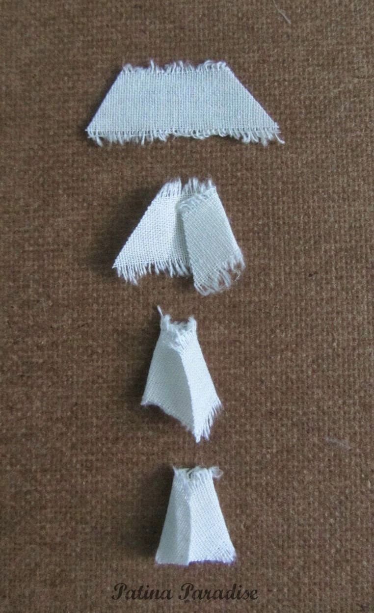 To make the sleeves cut the cotton into a trapezoid-ish shape as shown below in the photo and then fold in the piece from both sides as though you were creating a little rolled shape you then glue the sides together to make the seams for the sleeves.