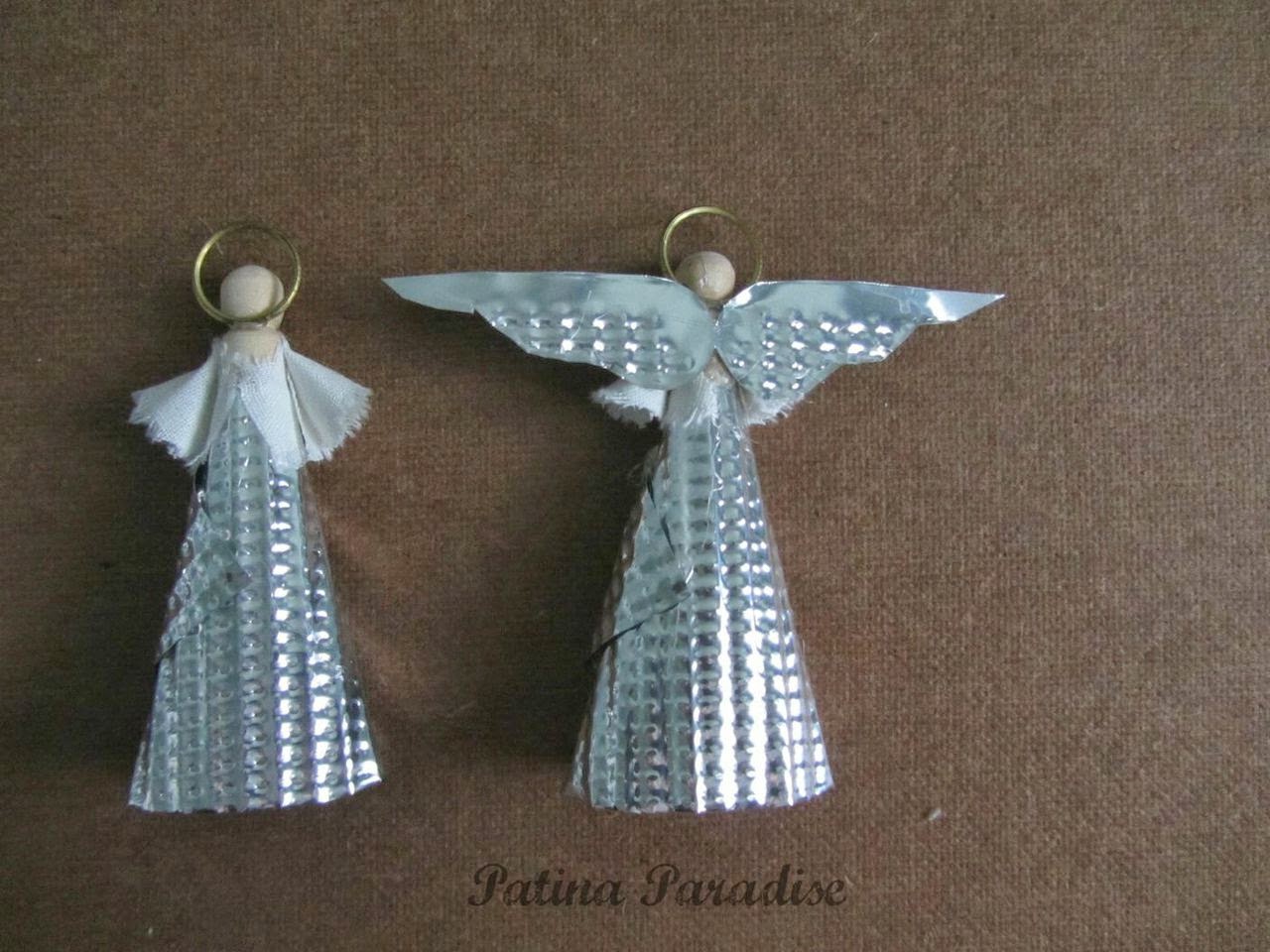 I had to experiment a bit by cutting the sheets into different shapes first before I found ones that worked. I found that one cookie sheet is enough to make 4 angels.