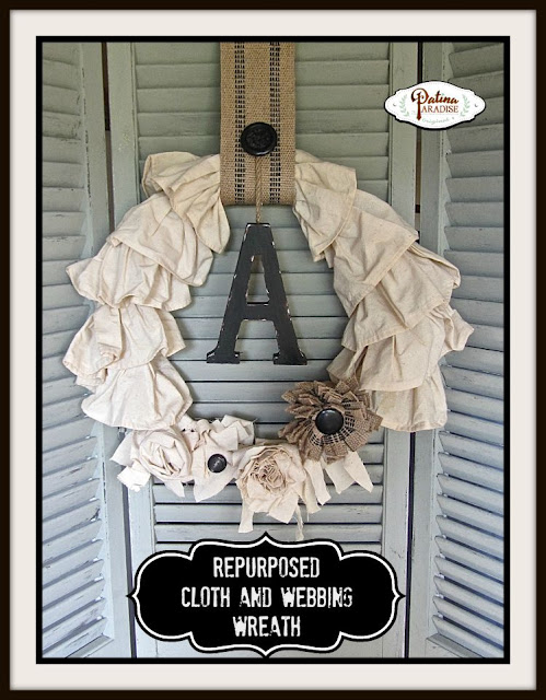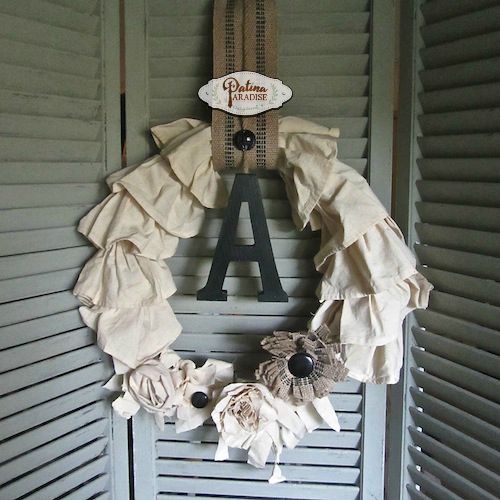 What a creative and brilliant idea for making a wreath! I love how vintage it looks and to think it was made from recycled fabric. The letter and flowers add a fabulous touch!