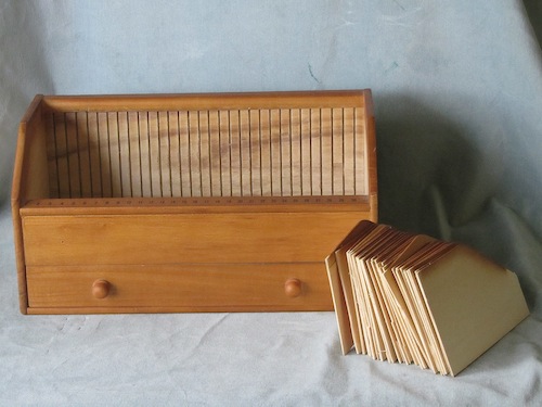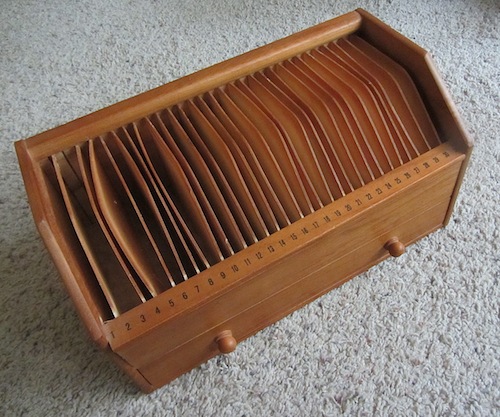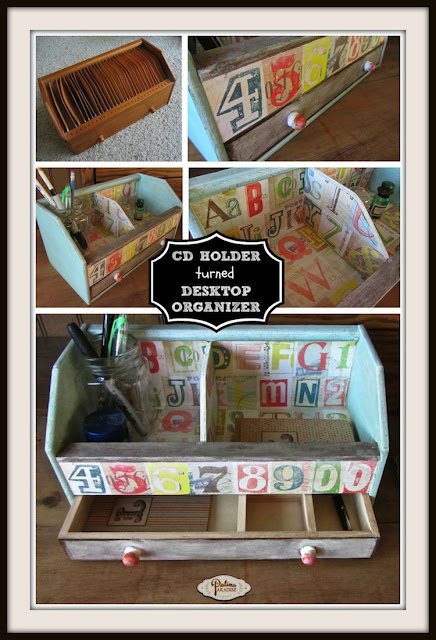 I decided to repurpose a wooden CD Holder into a Desktop Organizer. I had found it at the thrift store for a couple of bucks. It was in pretty good condition except for one of the wood slats was missing and most of them were all warped and full of dust in between them.