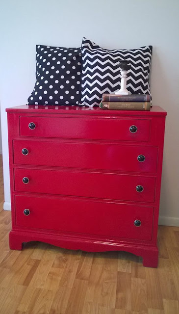Ready for some color? Bam! Thanks to Christine of Oquirrh Shadows Interiors, this dresser went from boring to beautiful, glossy red.