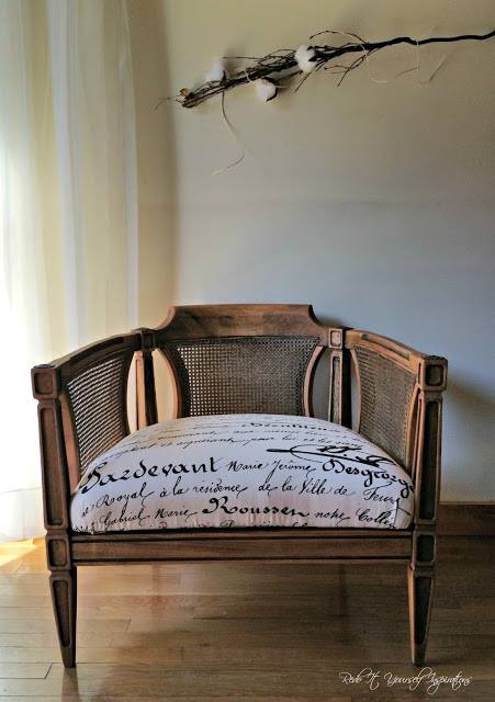 Our most popular makeover this week goes to this chair, that frankly left me speechless. It is absolutely beautiful. Just an amazing before and after. Look at the cut-out details in the frame! *sigh* Great find and excellent work by Robin of Redo It Yourself Inspirations!