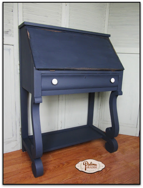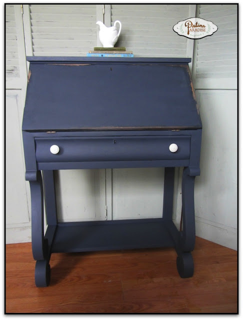 What a cute empire! I have a weakness for little desks myself Lucy, there are three waiting in the wings for refab over here. You would go ga ga over the vintage one with turned legs... Great save BTW, and great color choice!