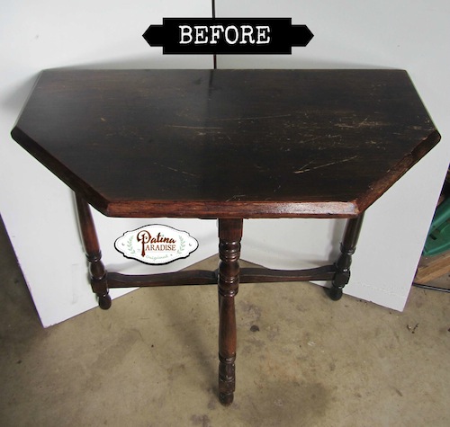 Enter this sad little side table that I had found at a garage sale. The top was really scuffed up, but that didn't bother me. It was inexpensive and I could always paint it.